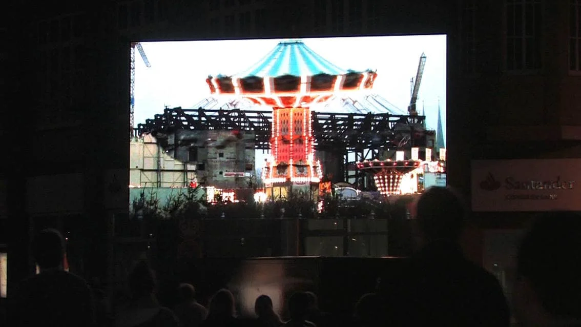 This video / sound installation examines the slogan “We are the people” with regard to its social relevance in 1989 and today, focusing on its inherent meaning in the light of the misuse it experiences from society and the media, on the one hand, and its romantic idealisation on the other. At the same time the piece inquires into the current state of affairs in Europe and discovers the local in the European context, and vice versa.